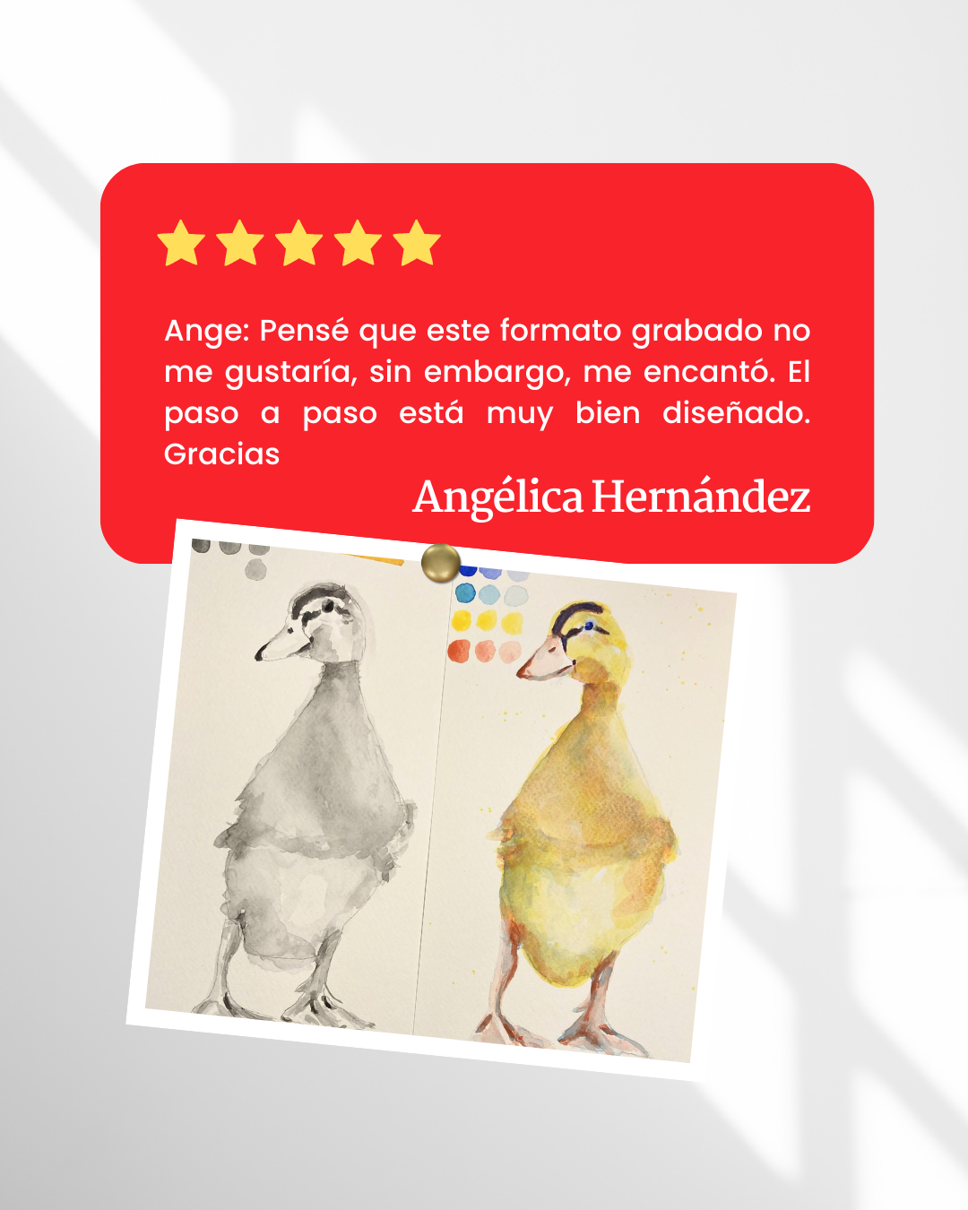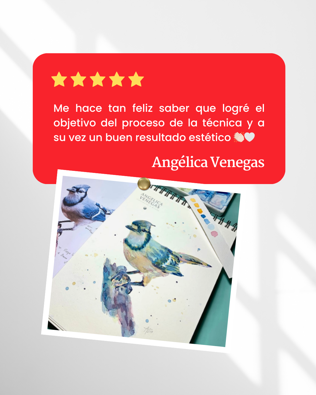 Feliz con el curso Ange, tienes una forma muy didáctica, cariñosa y tranquila de exponer la técnica en cada video. Dan muchas ganas de verlos (...) eres precisa y generosa con tus conocimientos.